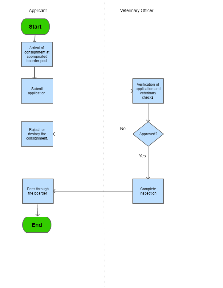 Inspection procedure for importInspection Requirement The respective consignment enters Eswatini through the approved border inspection post.The inspection is mendatory.The Veterinary Public Health Act, 201309-09-9999Good