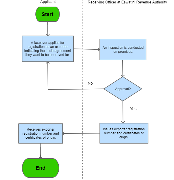 As and when consignments from registered applicants are to be exported with the intention of obtaining preferential access in the country of importation, the exporter will submit a declaration of the goods on ASYCUDA and further present a completed Certificate of Origin to the SRA clearance office for endorsement.