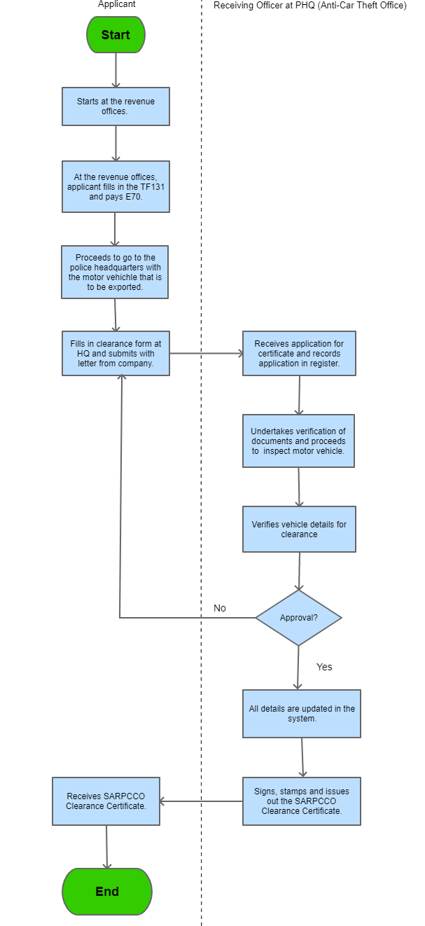 | Procedure Name | SARPCCO Clearance Certificate for Exporting Company Motor Vehicle |