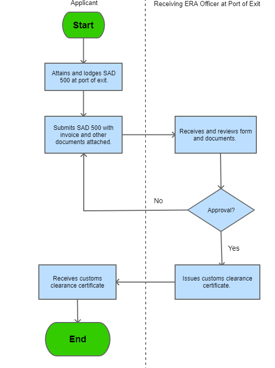 | Temporal Exports for Commercial Use | General | Temporary exportation of goods means the Customs procedure under which goods are in free circulation in a Customs territory and may be temporarily exported. An exporter is expected to have an import permit. | Temporal exports for commercial use is when assets are shipped for repairs and maintenance, service, outward processing, exchange, exhibition, hiring / leasing as well as for purposes of storage in approved storage in other countries and then re-imported with total or partial exemption from import duties and taxes or alternatively be permanently exported. | The Customs and Excise Act, 1971 | 09-09-9999 | Good |
